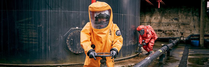 Trudnopalny, wytrzymały, hermetyczny kombinezon ochronny chroniący przed chemikaliami i różnymi zagrożeniami. Przeznaczony do użytku ratowniczego i przemysłowego.